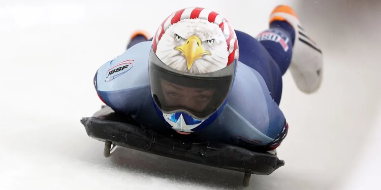 Katie Uhlaender of the USA competes during the Women’s Skeleton Race Heat three on Day 2 of the 2025 IBSF World Championships at Mt. Van Hoevenberg on March 7, 2025 in Lake Placid, New York.  (Al Bello/Getty Images)