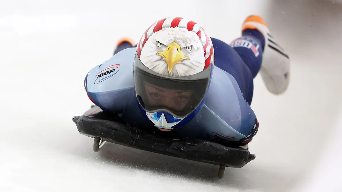 Katie Uhlaender of the U.S. reacts after the women’s skeleton heat 2 run during the Pyeongchang 2018 Winter Olympic Games at the Olympic Sliding Center in Pyeongchang, South Korea, on Feb. 16, 2018. (Mark Ralston / AFP via Getty Images)