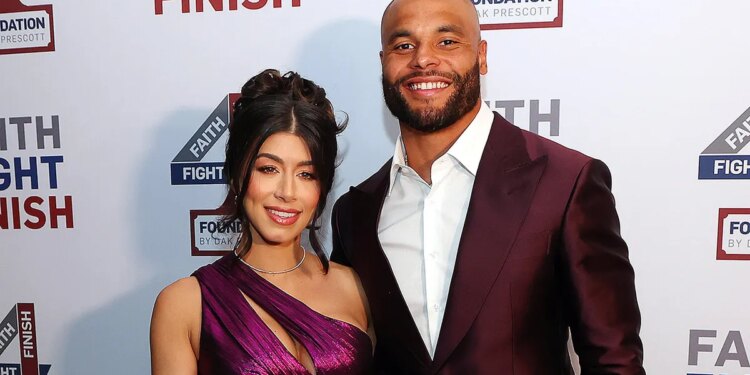 Sarah Jane Ramos and Dak Prescott pose for a photo before Dak Prescott’s Faith Fight Finish Foundation 2024 Gala at Thompson Hotel Dallas on May 17, 2024, in Dallas, Texas. (Richard Rodriguez/Getty Images for Faith Fight Finish Foundation)