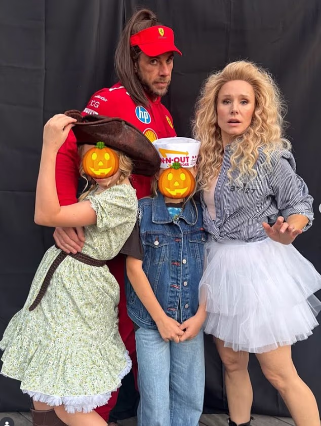Dax Shepard has revealed that his 11-year-old daughter Delta can’t wait to have a baby and has even offered to pay to freeze her eggs in order to aid in her pursuit of becoming a parent; he and Delta are pictured with his wife Kristen Bell and 12-year-old daughter Lincoln