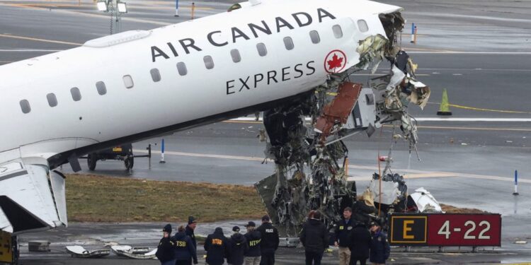 The impact was enough to crush the Air Canada jet’s nose, tilting the plane on its tail. The fire truck was mangled beyond recognition.