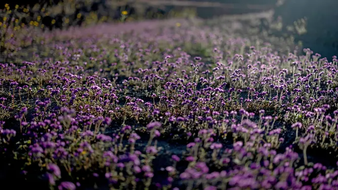 Flowers blooming on Tuesday, March 3, 2026, in Death Valley, CA.