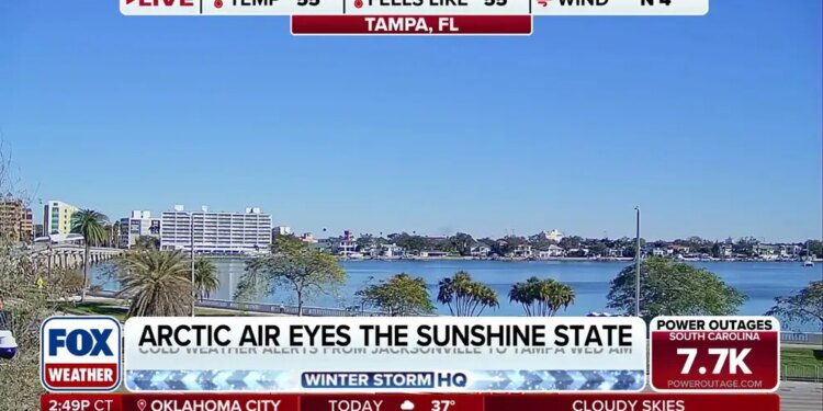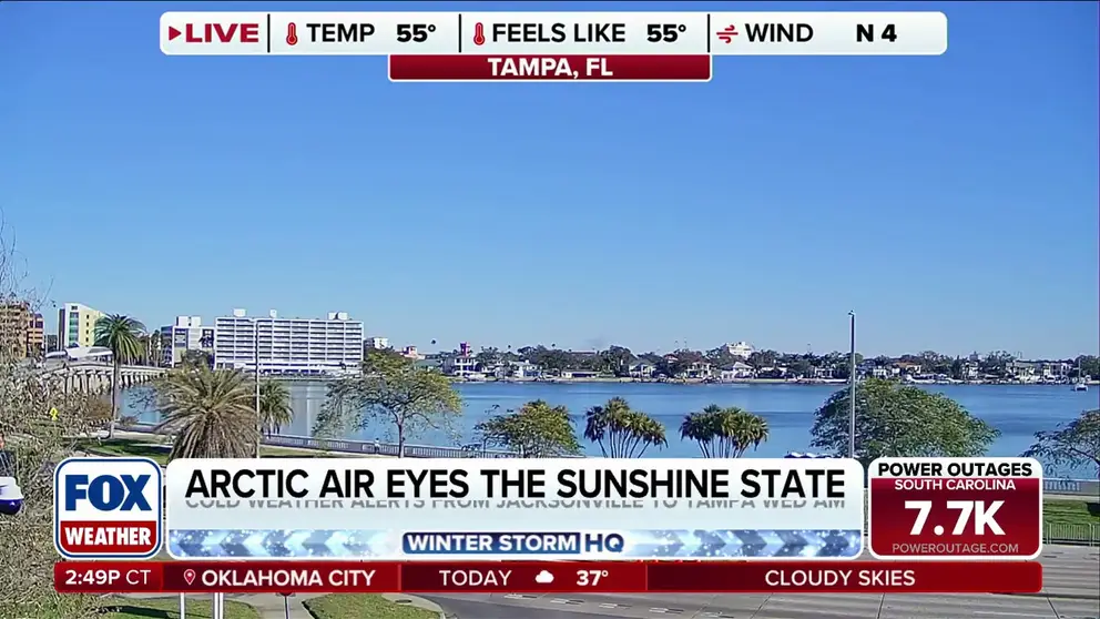 FLORIDA FREEZE: Cold weather alerts are in effect from Jacksonville to Tampa as Florida braces for an arctic freeze. FOX13 Chief Meteorologist Paul Dellegatto joins FOX Weather to discuss the freezing cold air that will impact the state.