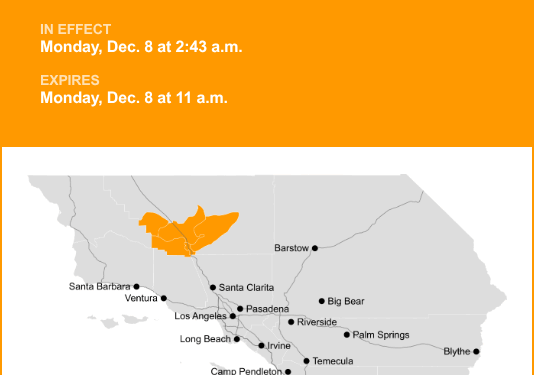 5 Freeway through Grapevine was placed under a dense fog advisory by the National Weather Service on Monday at 2:43 a.m. The advisory is in effect until 11 a.m.