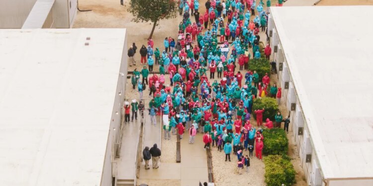 Aerial photos taken by The Associated Press showed children and parents at the South Texas Family Residential Center clad in jackets and sweaters, some of them holding signs that included “Libertad para los niños,” or “Liberty for the kids.”