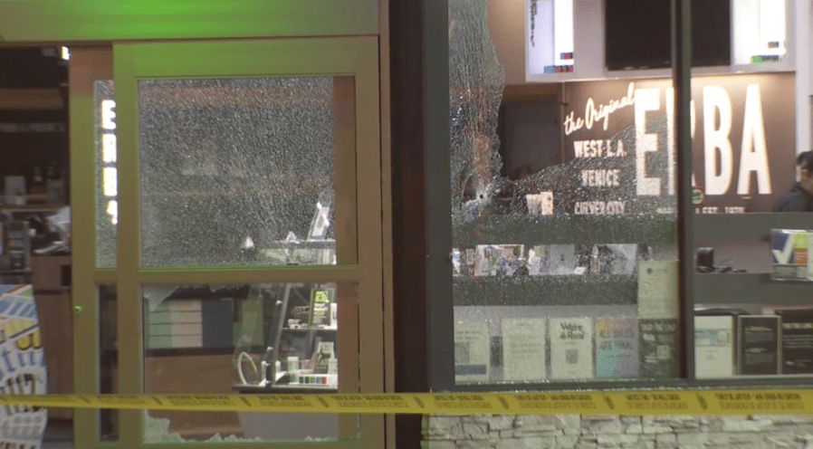 Images captured by KTLA at the scene showed shattered glass at the entrance to the dispensary.
