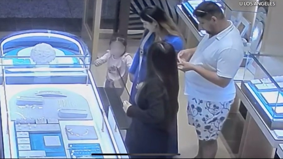 The owner of the jewelry store told KTLA that the couple entered the shop at around 7 p.m., browsed the display cases and asked to look at merchandise.