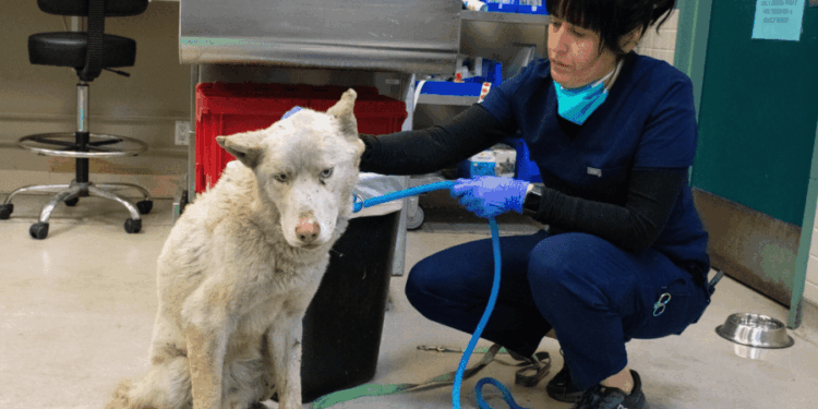 Riley was brought to the Pasadena Humane Society roughly 24 hours after the fire erupted. His injuries were extensive: burns covered much of his body, including all four paws, and he was struggling to breathe due to smoke inhalation. Despite the odds, Riley survived.
