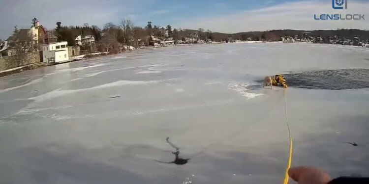 First responders quickly arrived at a frozen lake in New Jersey, where a dog had fallen through the ice and was trapped.