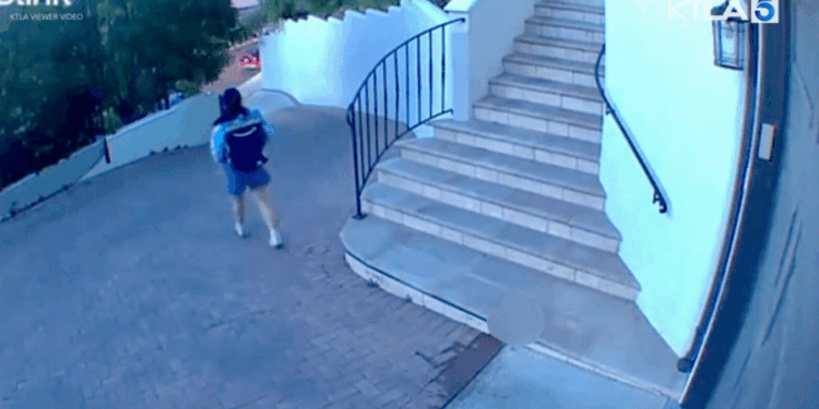 In the first video, the woman is shown climbing up the stairs of the homeowner’s front porch on Sunday to deliver a package. The home security footage showed what appeared to be a completely normal occurrence — until it wasn’t.