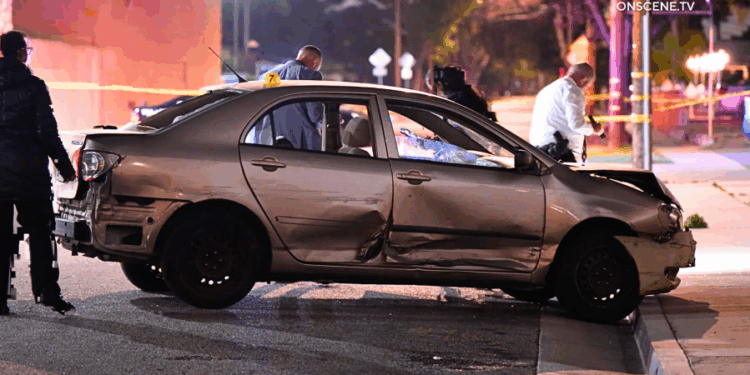 Video showed the victim’s vehicle on Sherman Way just north of Florence Avenue with significant front-end damage and a shattered back window.