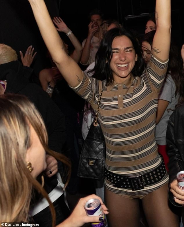 Dua was joined by a group of friends as she let her hair down while dancing to DJ Fatboy Slim.