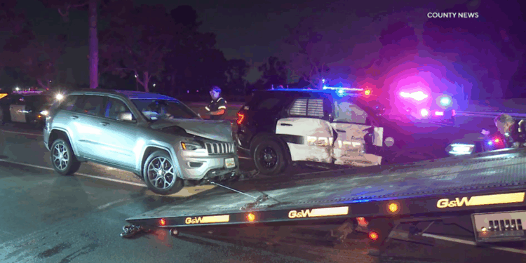 The DUI suspect was taken into custody and the Fountain Valley PD said that while no officers were injured, the unit that was hit is now out of service.