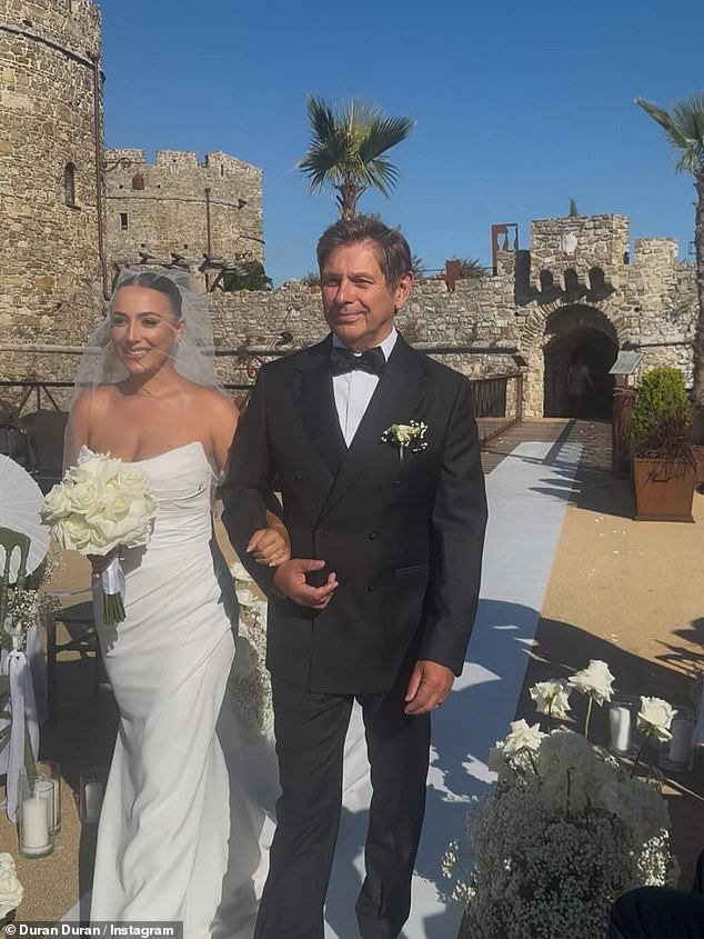 Duran Duran’s Instagram account shared pictures of the wedding – held on Monday in the mother of the bride’s home country, Italy – with the caption: ‘Ellea + Shiro September 1, 2025’.