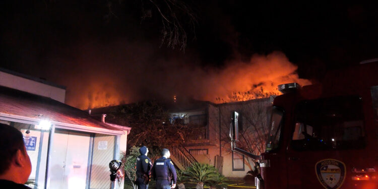 HOUSTON — Dozens of residents were displaced after a large apartment fire damaged more than a dozen units at a southwest Houston complex early New Year’s Day.