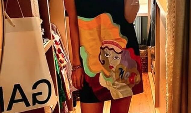 She completed the eye-catching ensemble with gold jewellery and chunky boots as fans rushed to the comments to share their compliments.