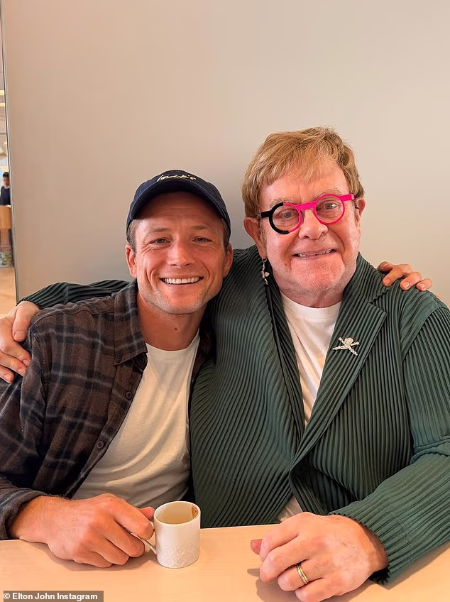 Posting on social media on Wednesday, Elton shared the snap with Taron, 36, as they smiled for the camera.