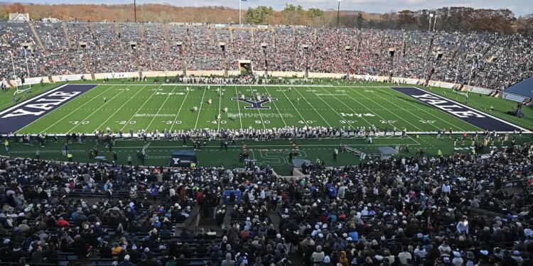 Over 54,000 fill the Yale Bowl for the second half of the 141st plays of “The Game” between the Yale Bulldogs and the Harvard Crimson on November 22, 2025 in New Haven, Connecticut. (Sean D. Elliot/Getty Images)