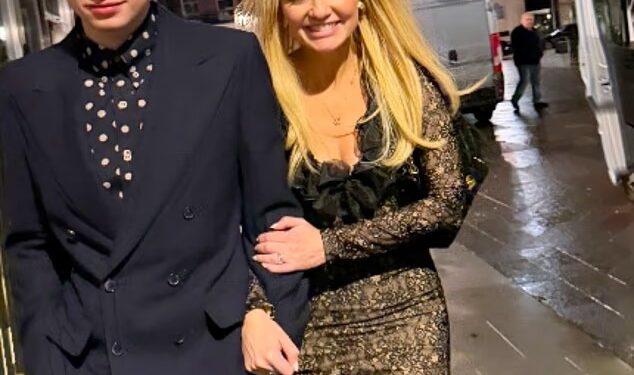 Emma Bunton looks stunning in a black lace dress as she parties with her son Beau, 18, at Cruz Beckham’s lavish 21st birthday bash