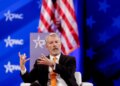 William Jervis opted for a pop of colour in a burgundy blazer and trousers, layered over a crisp white vest