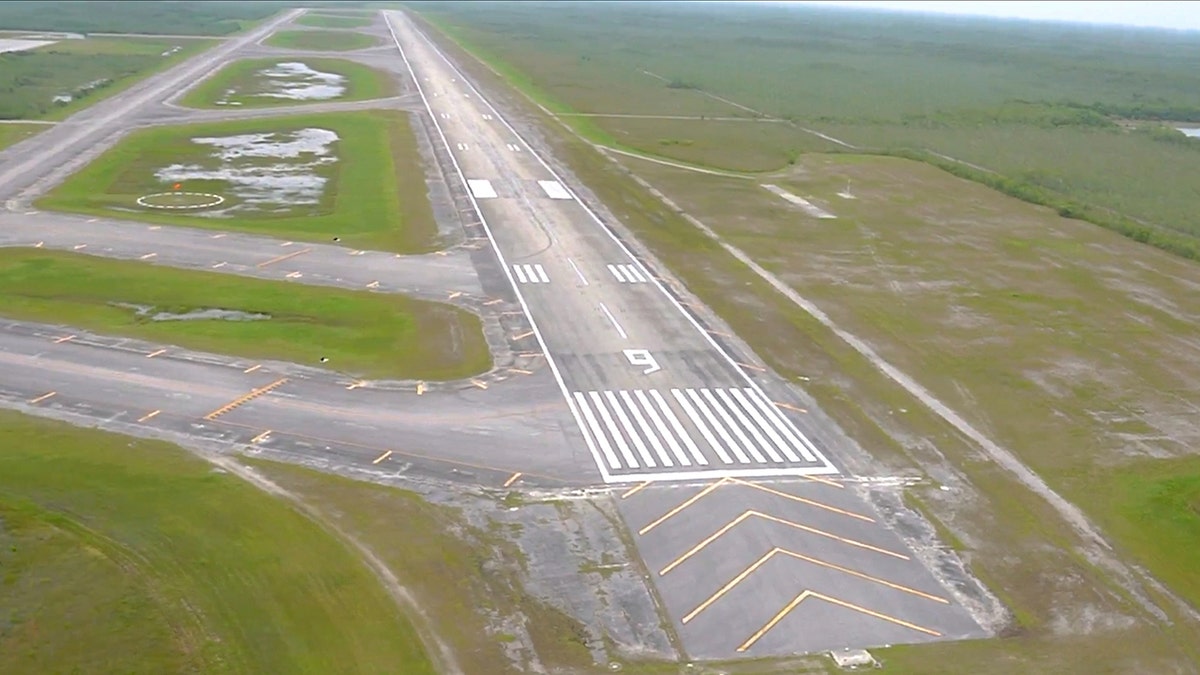 An image from an undated video released by the Office of Florida Attorney General James Uthmeier shows an isolated Everglades airfield about 45 miles west of Miami that state officials say will house a detention center, “Alligator Alcatraz.” (Office of Attorney General James Uthmeier via AP)