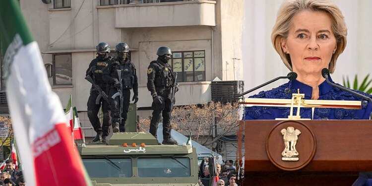 The EU designated Iran’s Islamic Revolutionary Guard Corps a terrorist organization, and Ursula von der Leyen pledged rapid implementation after a violent crackdown. (Morteza Nikoubazl/NurPhoto via Getty Images)