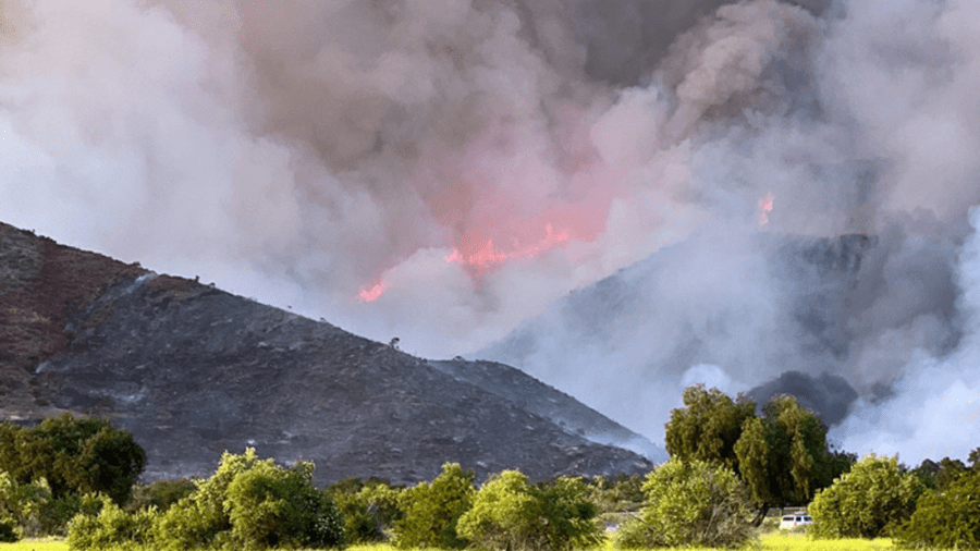 “Firefighters were able to make progress last night as fire behavior was minimal,” the status summary said. “A substantial number of extra firefighters and equipment have been requested for today, as there will be work to fully contain the fire, [which] is burning in steep and rugged terrain near Pala Reservation.”