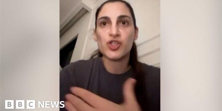 BBC Screengrab of video showing Zeynab Javadli speaking from her home in DubaiBBC