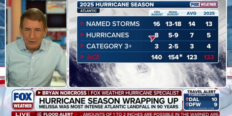 The Atlantic Hurricane Season is finishing up with no more tropical activity expected before the end of the season on Nov. 30. Colorado State University Senior Research Scientist Dr. Phil Klotzbach joins FOX Weather to talk about some of the 2025 season’s statistics and how it shaped up compared to the predictions at the beginning of hurricane season.