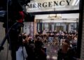 Kelce, 34, accepted dozens of bracelets from Swift’s adoring fans, but declined to pose for photos or to sign a sweater for one admirer, indicating he was just here for the show.