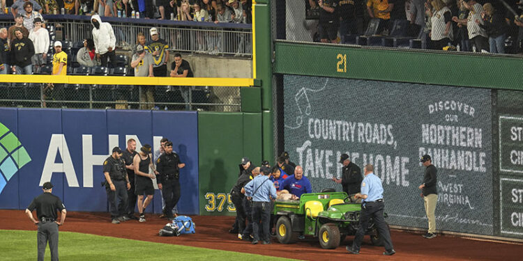 PITTSBURGH (AP) — A man fell from the 21-foot-high Clemente Wall in right field at PNC Park during Wednesday night’s game between the Pittsburgh Pirates and Chicago Cubs.