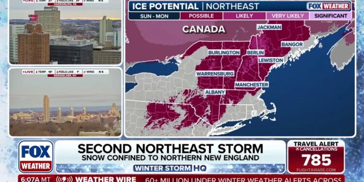 Icing will also be possible across northern New York into parts of Maine on Monday afternoon.