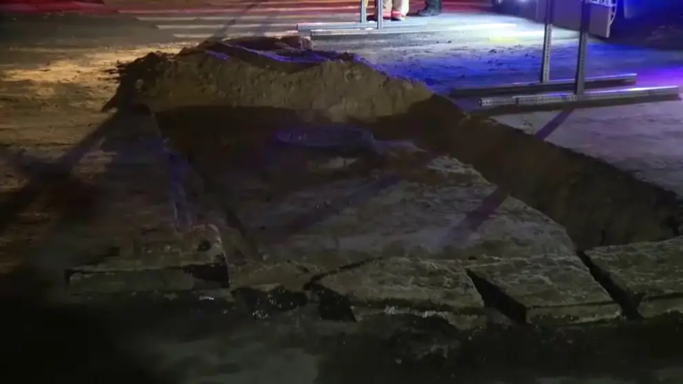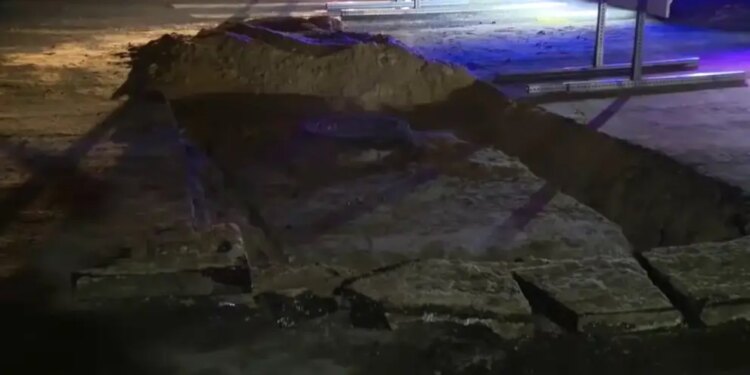 As the rescue continued, the team started drilling into the road to widen the opening — eventually cutting through asphalt to access the pipes in order to safely remove the animal.