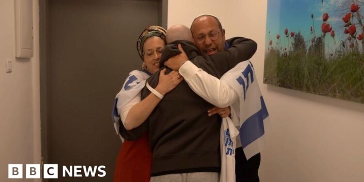 Video released by the Israeli military shows Mor smiling and embracing two relatives at a reception point.