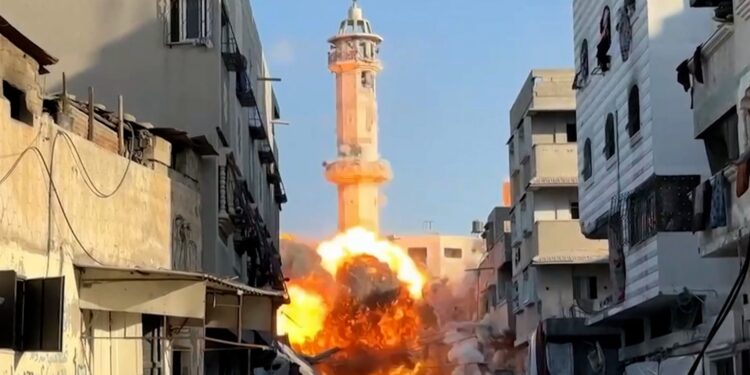 Israeli forces bombed and destroyed a 13th century mosque in the Tuffah neighbourhood of Gaza City on Tuesday.