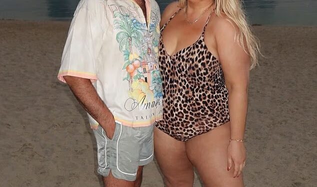 Gemma Collins, 44, shows off her weight loss in a leopard print swimsuit as she hits the beach with fiancé Rami Hawash – after losing 3st and dropping from a size 26 to a size 20