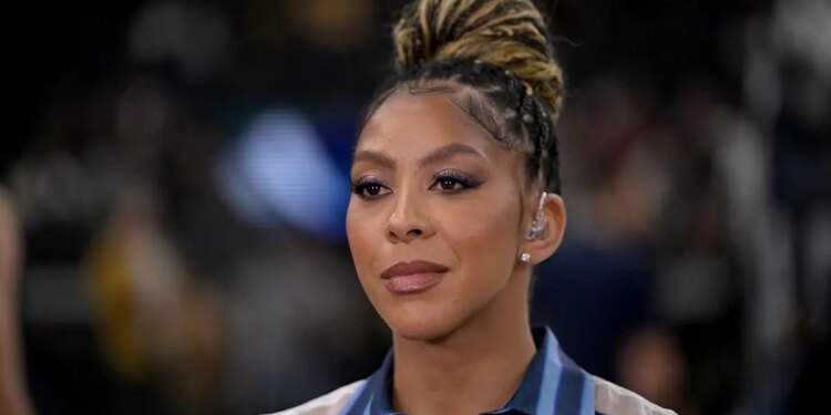 Candace Parker, a member of the Amazon Prime NBA broadcast team, stands courtside at Intuit Dome in Inglewood, Calif., during the game between the Los Angeles Clippers and the Los Angeles Lakers on Jan. 22, 2026. (Jayne Kamin-Oncea/Imagn Images)