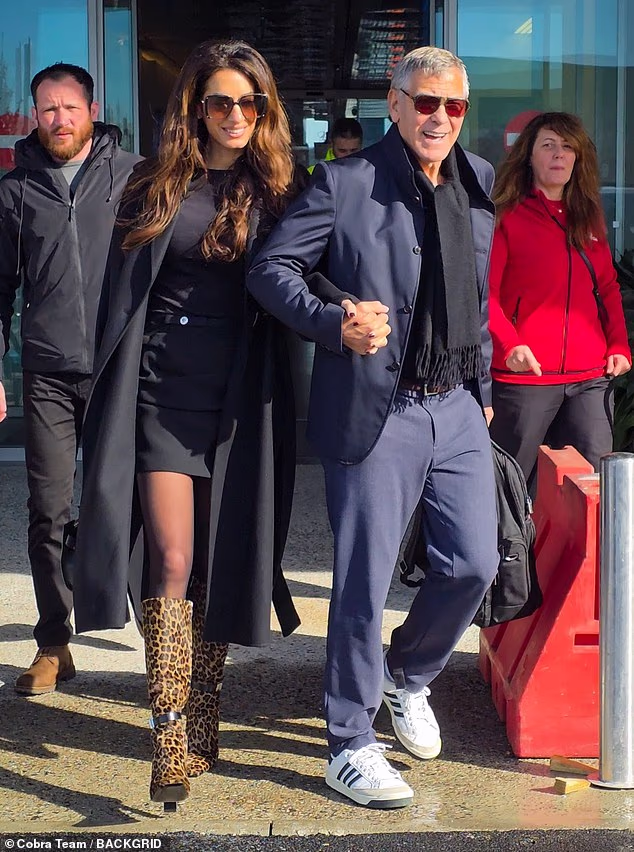 The Hollywood actor, 64, and French-British lawyer, 47, looked completely loved-up as they headed out of the airport.