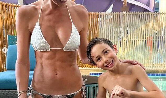 Former WWE star Stacy Keibler shared a bikini photo to Instagram this week as she posed with her young son. The 45-year-old looked very toned with several abs on her tummy