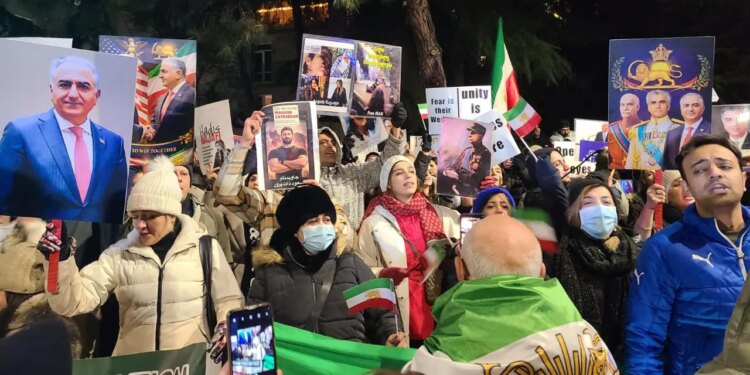 People gather in Georgia’s capital of Tbilisi to show their support for Iran’s protesters. Jan, 2026. (Nino Alavidze)