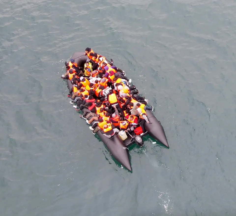 In 2020, a drone captured clear footage of an overloaded inflatable boat with 20 passengers.