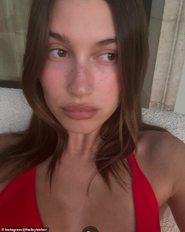 Hailey dropped a trio of heart-eyes in the comment section of Justin’s post, showing the world she’s not pressed.; pictured in April 2022
