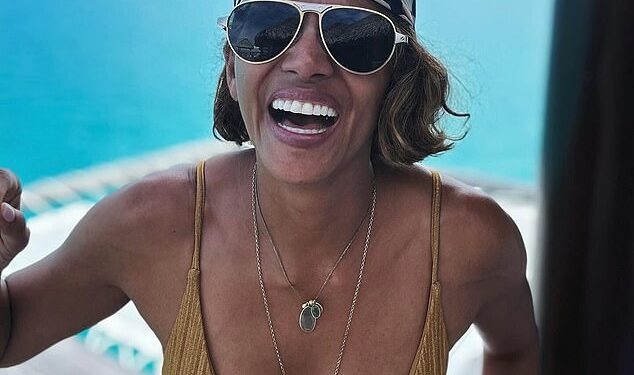 Halle Berry posed in a skimpy gold string bikini in a new post shared to Instagram on Thursday.