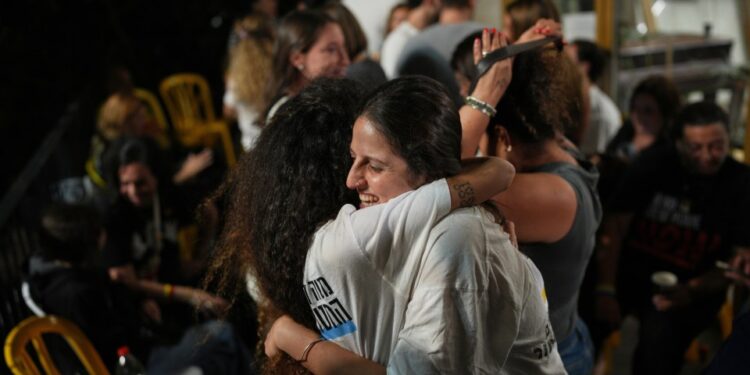 Families of Israeli hostages as well as young Palestinians were seen hugging and dancing after a breakthrough deal was reached between Israel and Hamas to kick off the first phase of a lasting peace deal.