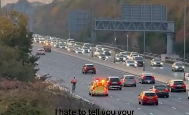 The video was shared on social media, with a caption which read: “Absolute scenes on the M4.”
