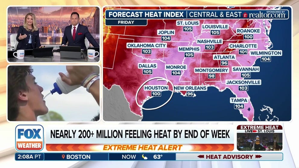 The FOX Forecast Center said nearly 200 million people will be feeling the heat by the end of the week as the system acts like a lid on the atmosphere, trapping heat and leading to prolonged periods of hot, dry weather. While this particular event may not break temperature records, it will still drive widespread highs into the upper 90s across a significant portion of the country.