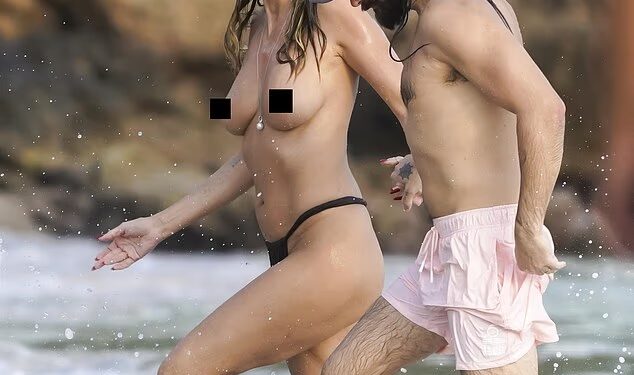 The Project Runway host went topless as she frolicked on the beach alongside her adoring husband Kaulitz the day after Christmas.