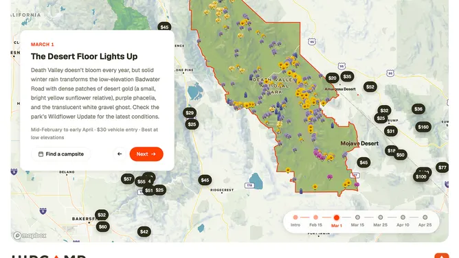Hipcamp, which is an app used to find and book campsites, has launched a brand-new superbloom forecasting tool which allows users to utilize an interactive map to see bloom windows and practical visitation guidance.