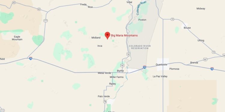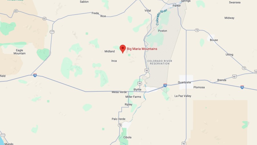 Big Maria Mountains in Riverside County seen in this Google Maps image.