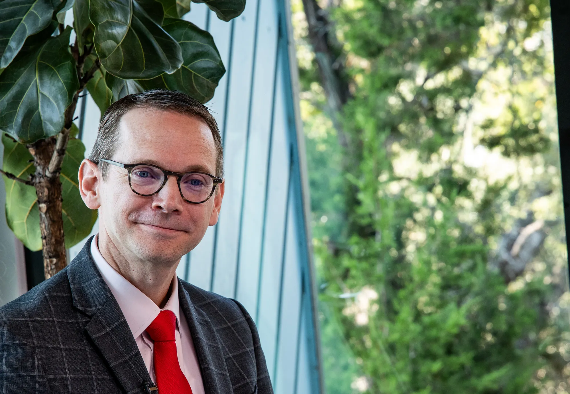 Texas Education Commissioner Mike Morath participates in a roundtable at the Alpha School campus in Austin on Sept. 9, 2025. Kaylee Greenlee for The Texas Tribune